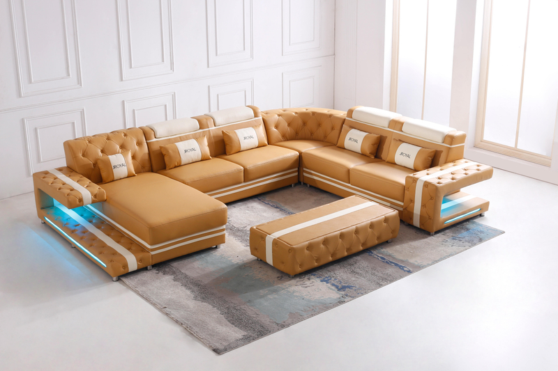 Această interpretare modernă a canapelei de lounge a secțiunii fără timp vine cu tetieră reglabilă, LED-uri LED-uri la distanță pe ambele handicare. Tabelul de cafea și standul TV este opțional pentru a se potrivi cu canapeaua, atât masa de cafea, cât și standul TV vine cu LED Light. Este disponibil în gri, bej, maro și toate celelalte culori de care aveți nevoie pentru a face un living modern pentru dvs. Design popular cu o calitate minunată și funiții uimitoare.